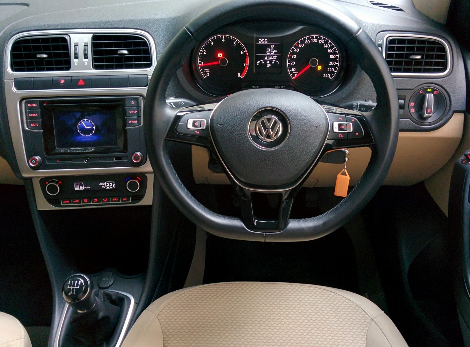 The Ameo’s strong point is its premium and well finished interior. Identical to its diesel counterpart in every sense (except that the diesel comes with an optional DSG gearbox) the Highline trim of the petrol variant has a beige and black theme that makes it look roomier than it actually is. Brushed aluminium and chrome accents lend a classy touch, whereas the leather wrapped flat bottom tilt & telescopic steering wheel adds sportiness.